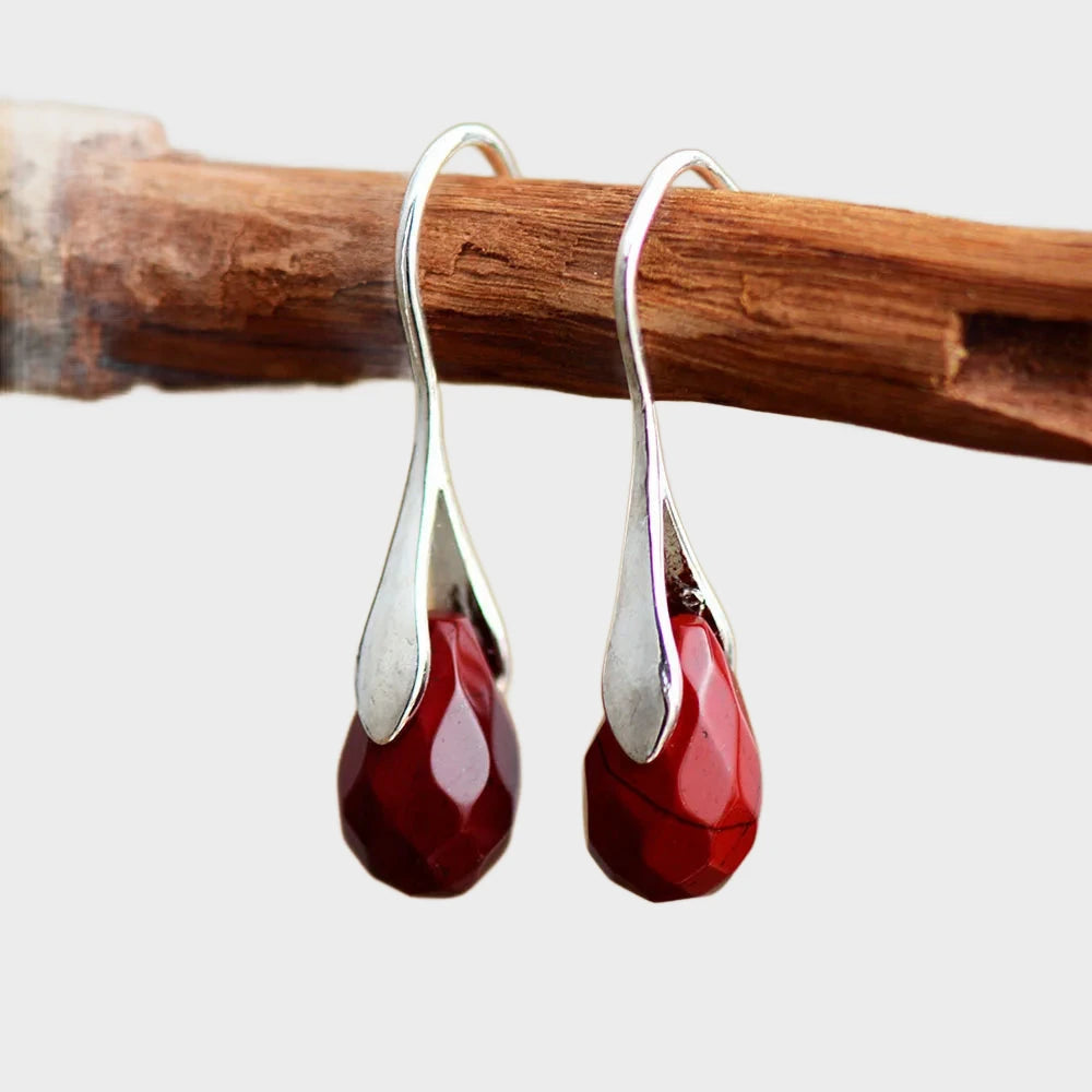 עגילי “טיפות עלה ארגמן” – ג’ספר אדום בגימור כסוף