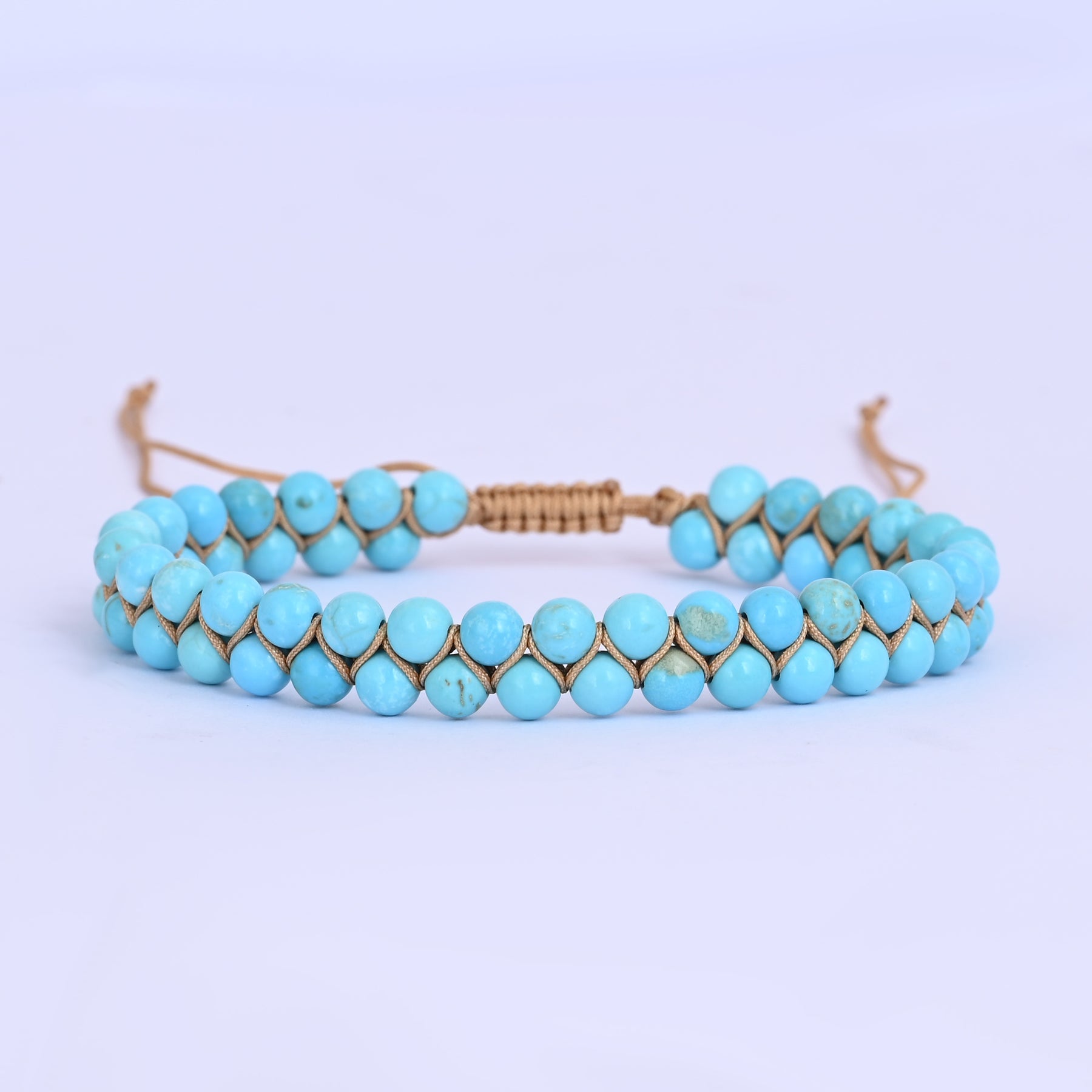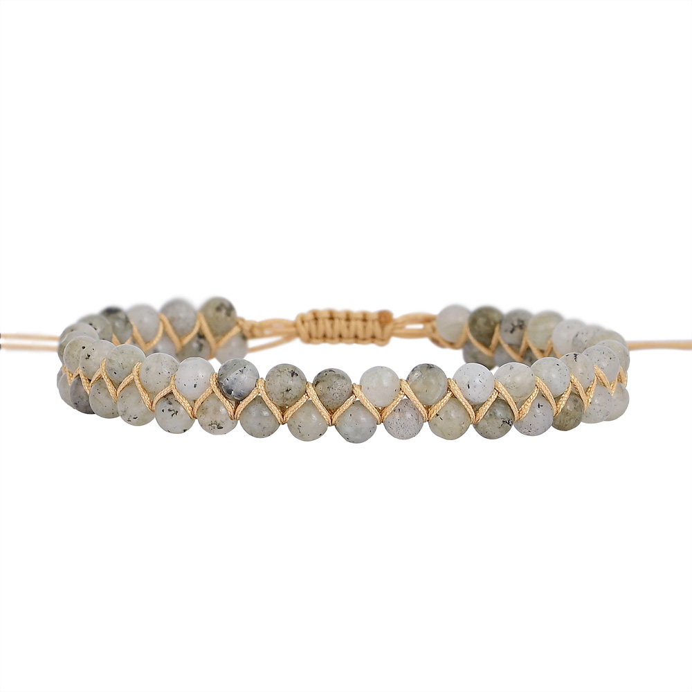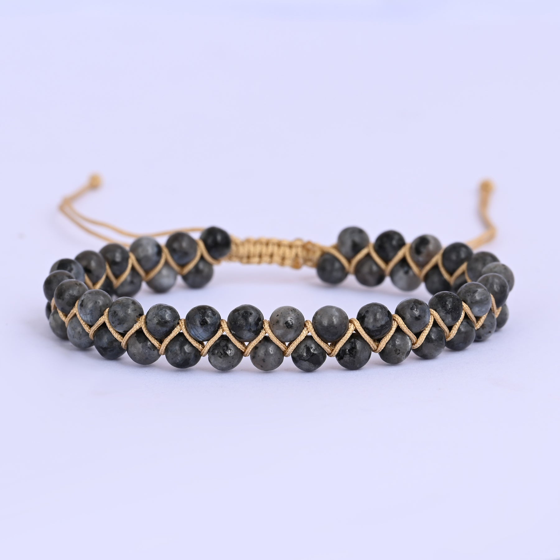צמיד אלגנטי ומיוחד העשוי מחרוזי אבן טבעית באיכות פרימיום. הצמיד כולל שכבה כפולה של חרוזים בקוטר 6 מ"מ, קלועים בעבודת יד עם חוט איכותי ומנגנון התאמה חכם.