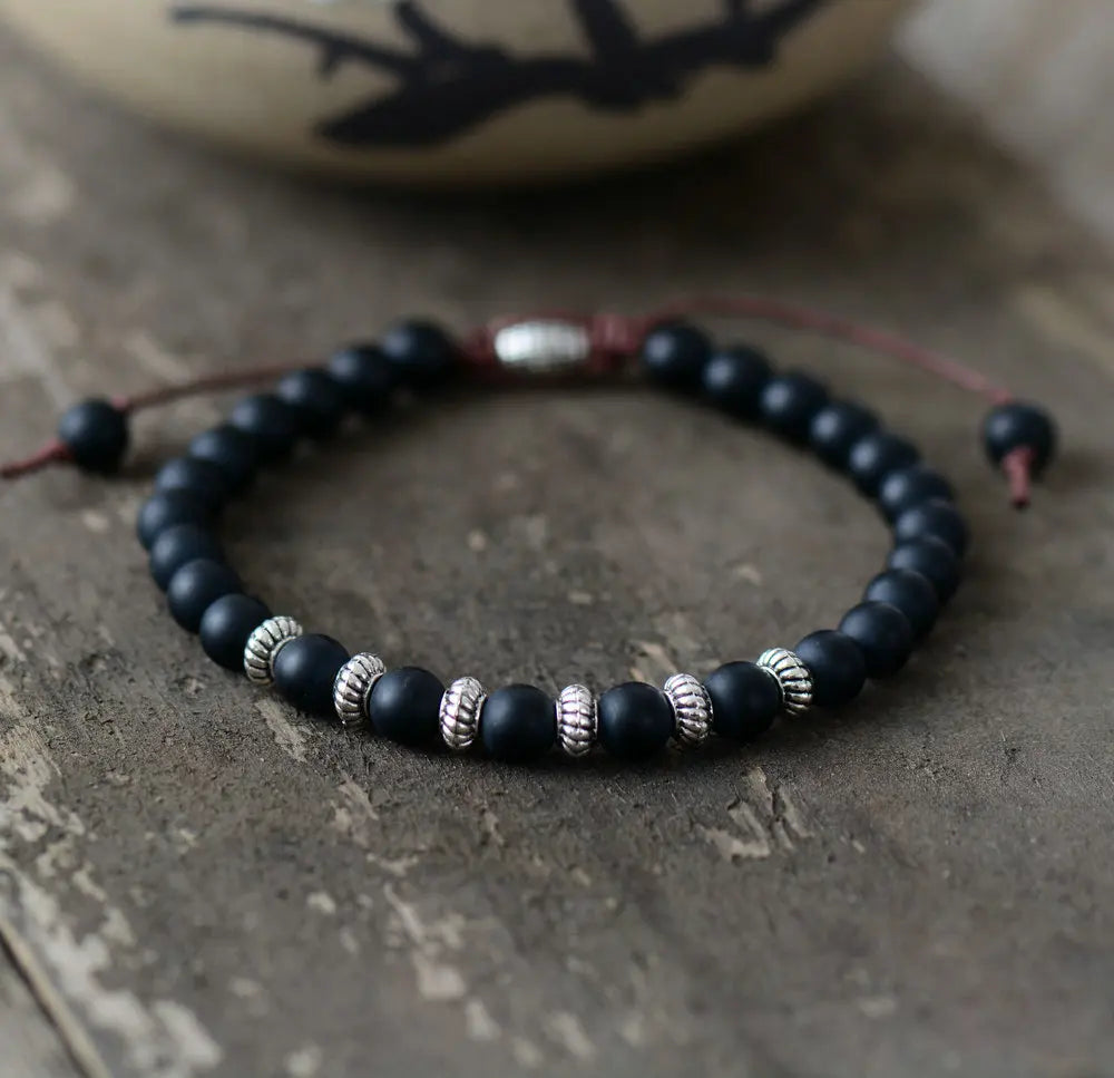 צמיד בוהו אוניקס שחור מאט לגבר