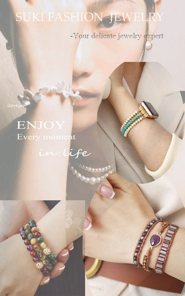 • עיצוב: צמיד Wrap תלת־שכבתי עם אבן מרכזית וטקסטורות משתנות