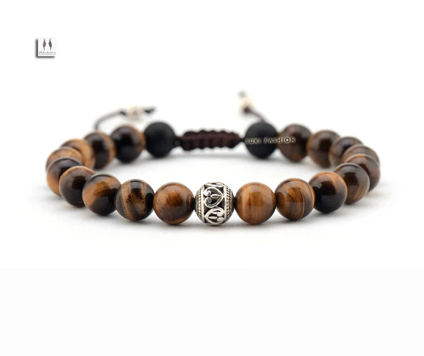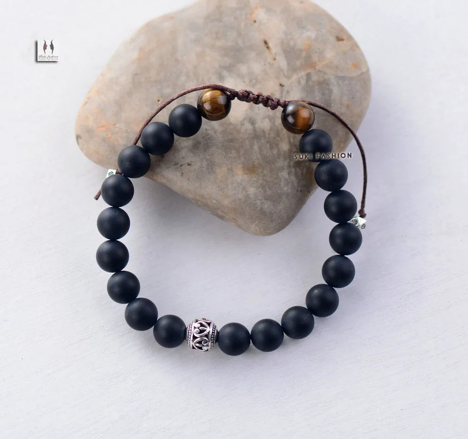 צמיד חרוזים טיבטיים לגבר בעיצוב נקי ומדויק.