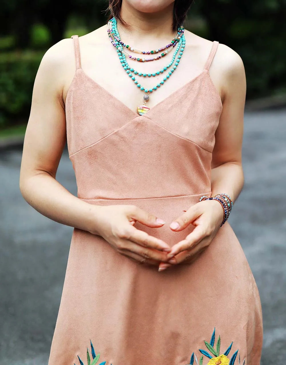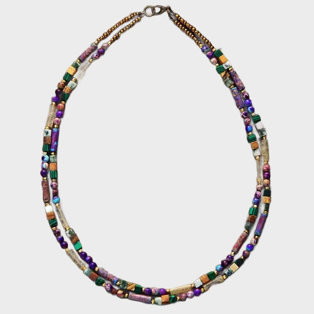 קולר “שכבות הרמוניה” – חרוזי אבנים טבעיות בשתי שורות